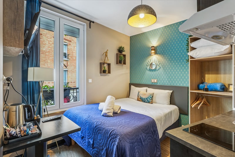 Ce studio double supérieur, situé au 106 rue de Paris, 92100 Boulogne-Billancourt, où l'enregistrement a également lieu, est équipé d'une télévision à écran plat, d'une kitchenette et d'une salle de bains privative.